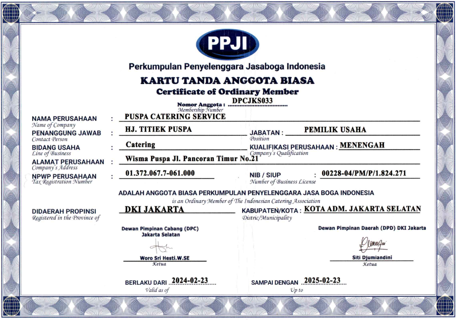 Dengan pengalaman di bidang jasa boga selama lebih dari 40 tahun, pelayanan kami didukung oleh tenaga profesional, mutu produk yang prima serta pelayanan berkelas hotel berbintang.